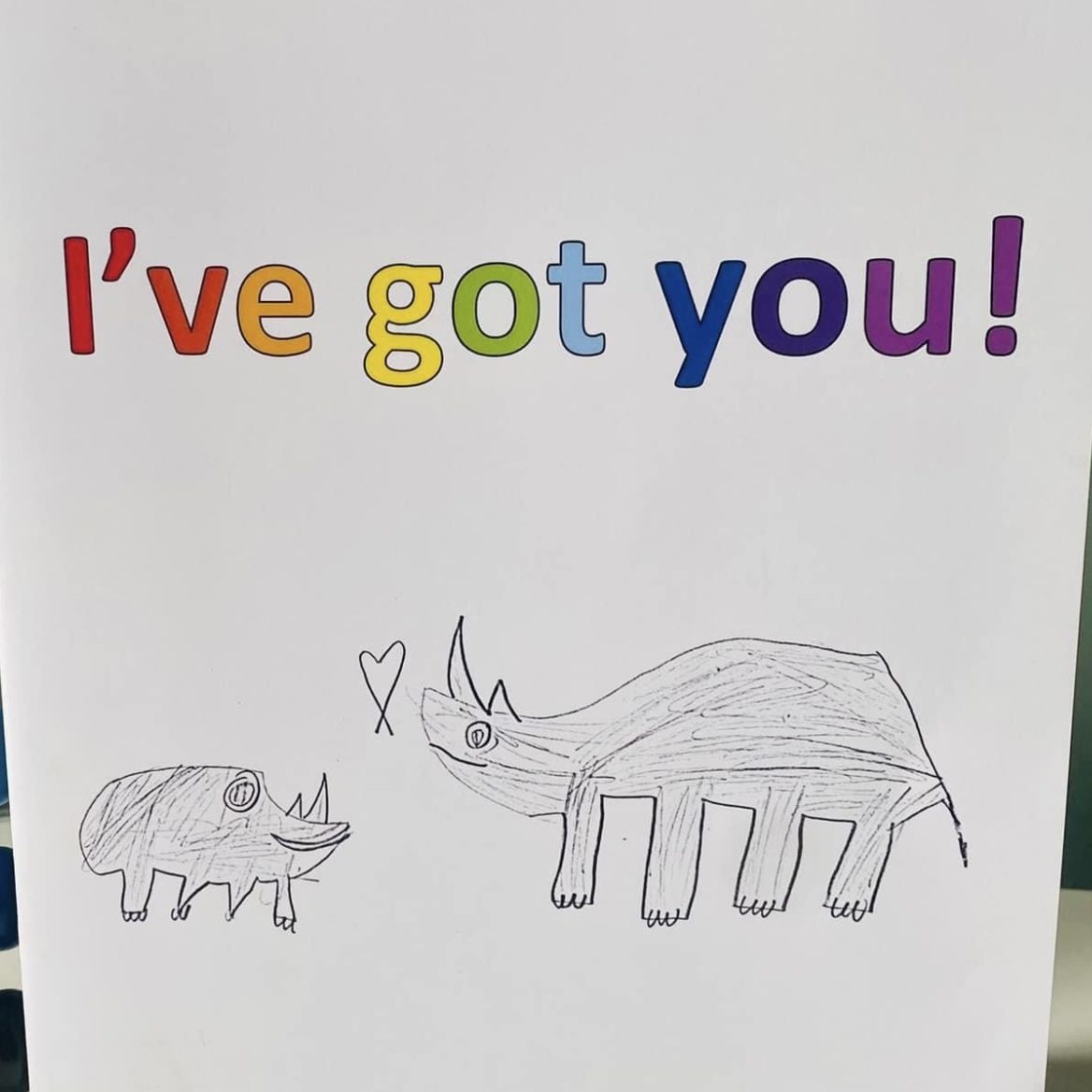 Oscar was involved in the illustration process. We all worked together to bring the words to life. He is very proud to have directed Jon to create the final page. This then became the I've got you! logo.